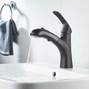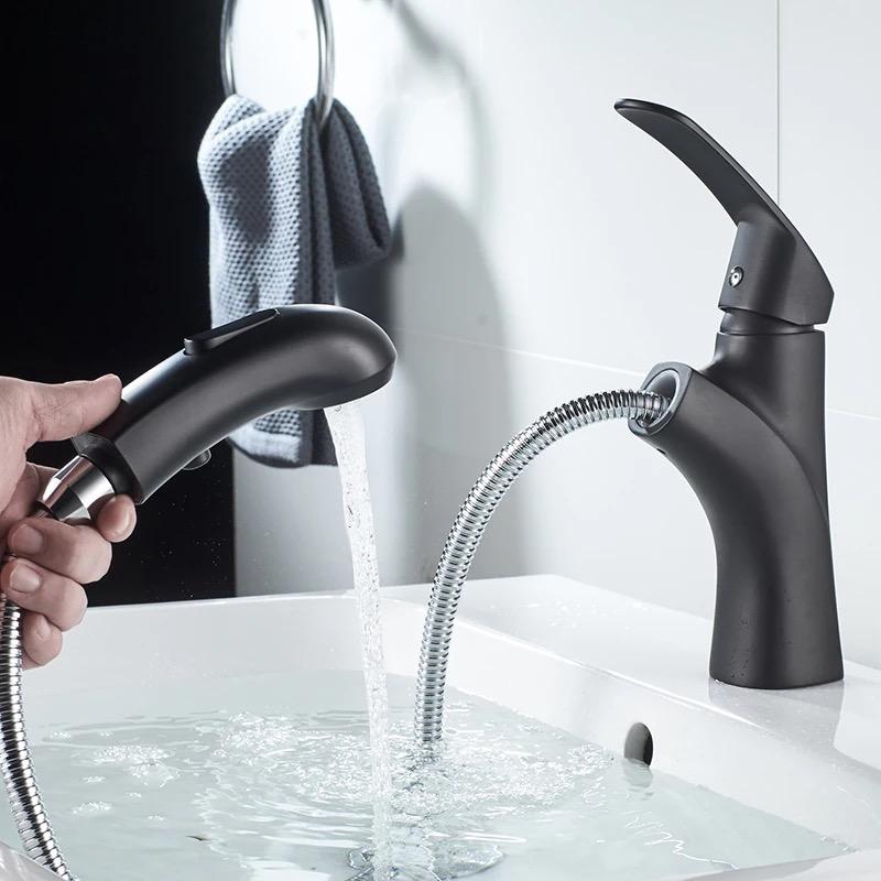 Black pull-out basin tap